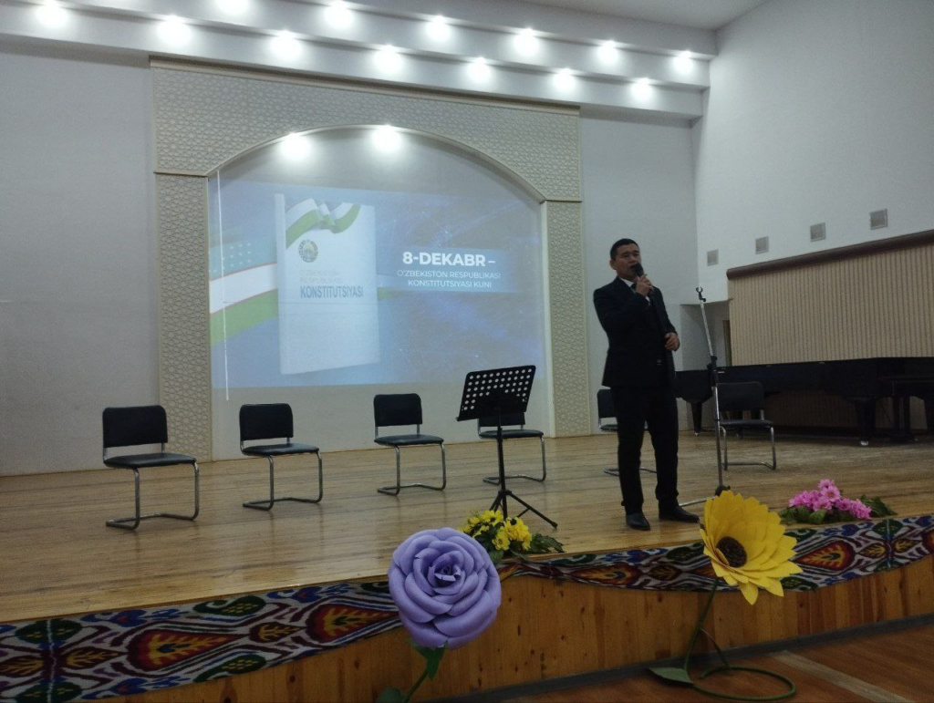 2025-yil, 5- dekabr kuni Qarshi davlat texnika universiteti 1-son akademik litseyi o’quvchilari Respublika Ma’naviyat va ma’rifat markazi Qarshi shahar bo‘linmasi bilan hamkorlikda Qarshi shahar ixtisoslashgan san’at maktabi konsertlar zalida 8- dekabr O‘zbekiston Respublikasi Konstitsiyasi qabul qilingan kun munosabati bilan “Konstitutsiyaning birdan-bir manbai va muallifi tom ma’noda xalqdir”- mavzusida ma’naviy — ma’rifiy bayram tadbiri bo‘lib o‘tdi.